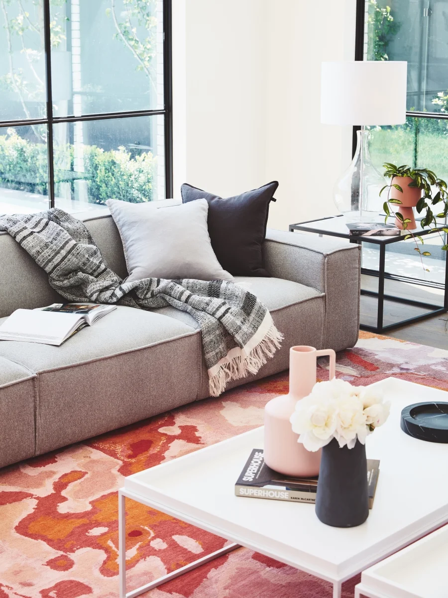 Light, soft-weave rugs are easy to store during warmer months. Place on timber or tiled floors under dining tables and beds.